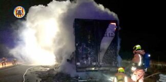 Accident seguit d’incendi de camió mobilitza a bombers en l’A-35 a...