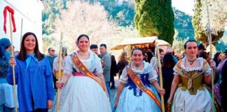 Un ambient festiu acompanya la romeria de les Falles de Xàtiva...