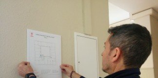 Es col·loca la senyalítica del pla d’evacuació de l’Ajuntament de Xàtiva