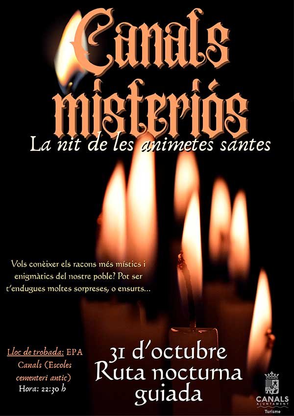 La Nit de les Animetes Santes a Canals tindrà lloc el divendres, 31 d’octubre, a les 22.30h. Cal inscripció prèvia (https://forms.gle/ALMDMN2FjQVGmjK79) perquè les places són limitades.
