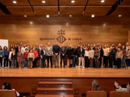 Els regidors Àngels Muñoz i Àlex Borrell acompanyen els fallers en l’emotiu acte que va reunir un nombrós públic al pati de...