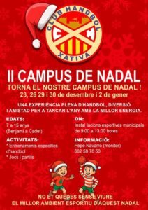 El Club Handbol Xàtiva es prepara per a viure unes intenses festes de Nadal plenes d’esport base amb l’organització de dos esdeveniments clau: el seu tradicional Torneig Escolar de Nadal i un Campus de Tecnificació.