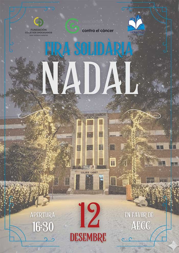 Xàtiva, 3 de desembre de 2025. Santi.– El Col·legi Claret de Xàtiva prepara ja un dels seus esdeveniments més significatius de l’any: la Fira Solidària de Nadal, una iniciativa l’objectiu de la qual és recaptar fons en favor de l’Associació Espanyola Contra el Càncer (AECC) de la localitat. Tota la recaptació obtinguda es destinarà íntegrament a recolzar la labor que l’entitat desenvolupa a Xàtiva.
