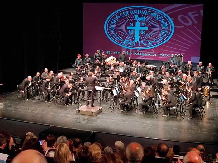 L’acte es va canviar a les 12 de migdia (era, inicialment, a les sis de la vesprada) per què la cavalcada del Ninot infantil es va traslladar a aquest diumenge, i molts dels músics toquen en xarangues. Amb un horari tan matiner i una competència ferotge d’actes, com la mateixa cavalcada —que necessita organitzar-se moltes hores abans i dinar al casal— o la XXI Mitja Marató, a la mateixa hora, fou molt satisfactòria l’assistència: la platea fregava el ple absolut. Van presidir la regidora de Cultura Festiva, Maria Beltran, i el president de la Germandat de Confraries de Xàtiva, Julio Bellver. L’entrada costava tres euros, i la recaptació es destinarà íntegrament a accions benèfiques. Tots dos van fer un discurs des de l’escenari. Beltran va elogiar l’esforç de les confraries i l’aposta per la cultura i per la solidaritat que suposa un concert com el previst. Bellver va destacar la vessant solidària de les confraries, i ressaltà que no es podria entendre una expressió de fe com la Setmana Santa sense tenir en compte eixa aspiració d’ajudar als més necessitats. Feu les presentacions Ximo Mateu Vinaches.