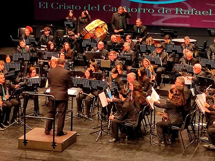 Havia anunciat el director «un viatge espiritual a través de vuit obres emblemàtiques que combinen tradició, devoció i expressivitat […] des de la serenitat clàssica de Mozart fins a la intensitat dramàtica de la música processional espanyola dins d’un relat sonor coherent». Doncs així va ser. Una obertura discreta, com per començar el camí, amb Pavana. La riquesa de la Setmana Santa més expressiva, seguidament, amb Caridad del Guadalquivir i La Madrugá. A continuació, la part més canònica d’un repertori sacre: Ave Verum (sempre Mozart) i Mektub, de Sanmiguel. Per arribar a les emocions en clau local: El Cristo del Cachorro, la bellíssima i reconeixible composició del músic xativí Rafael Sanz Mayor. Després de la seua interpretació, el director convidà a Sanz, qui estava en l’escenari actuant dins de la formació, a saludar. I el xativí va rebre una gran i merescuda ovació com el compositor brillant que és. El Canon de Pachelbel, impactant, donà pas a Mater Mea, partitura indissolublement associada a la Setmana Santa en general i a la de Xàtiva en particular que sempre, sempre emociona. La Nova oferí un bis que el mateix director anuncià de viva veu: una nova peça de Sanz, El Santo Entierro.