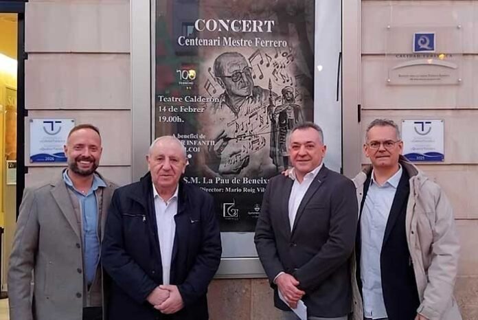 La programació del Centenari del Mestre Ferrero impulsat per l’Ajuntament d’Ontinyent i coordinat per la Comissió del Centenari es reprenia esta setmana amb actes commemoratius també fora de la ciutat. En aquest cas estava un concert el passat dissabte al Teatre Calderón d’Alcoi organitzat per la Societat Musical La Pau de Beneixama, un acte commemoratiu amb caràcter solidari a favor de l’Hogar Infantil d’Alcoi al Teatre Calderón de la capital alcoiana.