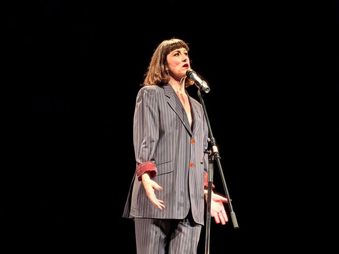 L’estatus de Maria Juan ja es nota. Com per exemple amb un espectacle com el de dissabte a Xàtiva, on el buit escènic era tan gran (només un micròfon de peu) i ella sola el va omplir. O amb eixa passejada inicial pels corredors de la platea rebent ovacions quan encara no havia ni obert la boca. Tot un bany inicial d’estima per a una artista que va omplir el recinte: tota la platea, totes les llotges i fins a l’última i recòndita butaca de l’amfiteatre. De gom a gom. Èxit de convocatòria, per tant, per a les regidories implicades en aquest acte emmarcat dins del programa del Dia de la Dona. De fet, la presència institucional es va notar especialment amb l’assistència de l’alcalde, Roger Cerdà, acompanyat d’alguns regidors de l’equip socialista. Tots ells, en la fila 12. En butaques de platea més endavant, però mesclats entre la resta d’espectadors es va poder veure al regidor del Gran Teatre, Alfred Boluda, i a la primera tinent d’alcaldessa, Amor Amorós, tots dos de Xàtiva Unida.