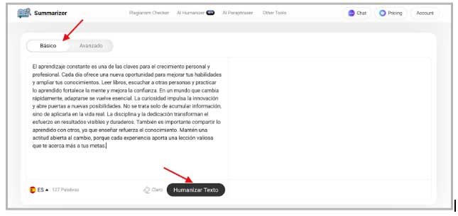 Utilizar una herramienta en línea para humanizar el contenido de IA