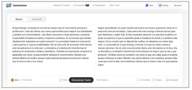 Como se puede apreciar en la imagen superior, el texto generado por la herramienta resulta más natural y coloquial. Sustituyó las palabras complejas y redundantes por otras de uso más común. Este es un método rápido y práctico para humanizar el texto. Sin embargo, conviene revisar el resultado para comprobar si necesita alguna modificación. Una vez hecho esto, el texto estará listo para su uso en cualquier contexto.