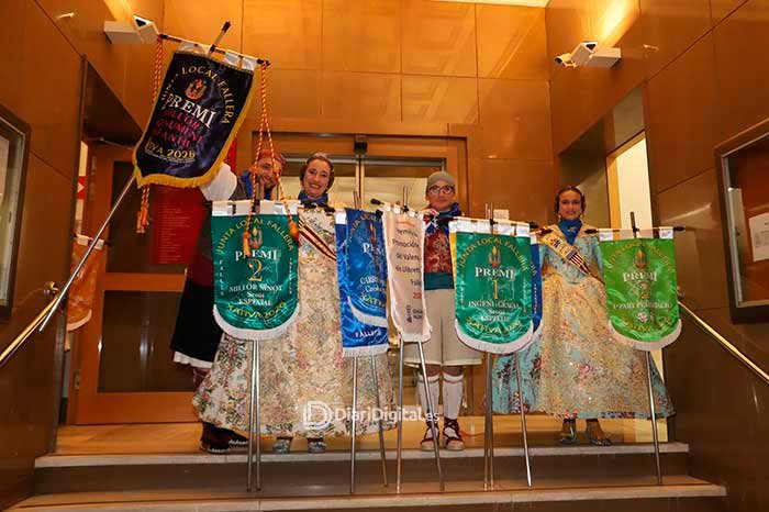 L’alcalde de la ciutat, Roger Cerdà, juntament amb les Falleres Majors de Xàtiva, Marta Díaz i Ada Domínguez, van ser els encarregats d’entregar els estendards en un acte multitudinari a les portes de l’Ajuntament.