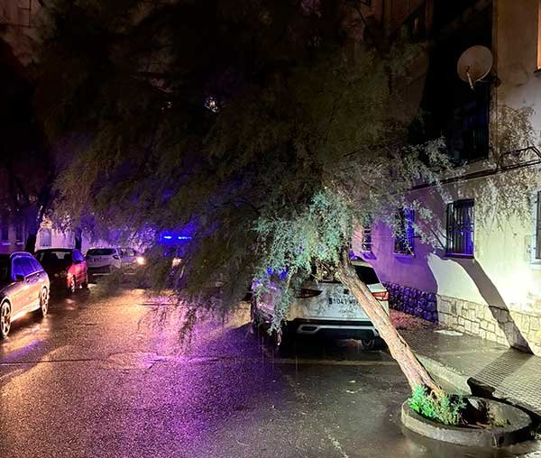 L’incident va tindre lloc al carrer Luis Vives, on veïns van alertar al 112 després d’observar que un dels arbres de l’entorn s’havia inclinat perillosament, afectat per l’acumulació d’aigua i el reblaniment del terreny.