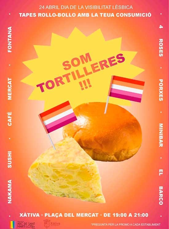 Aquest divendres 24 d’abril, Xàtiva acull la tercera edició de «Som Tortilleres – El Mercat està per a Bollos», una acció festiva i reivindicativa que visibilitza el col·lectiu lèsbic des de l’humor, l’afecte i la quotidianitat.