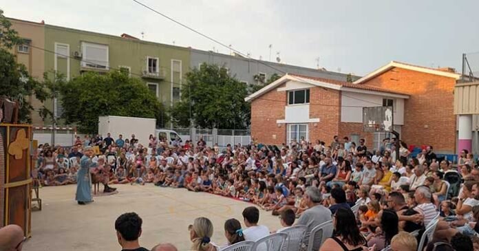 Tres grans funcions, per tant, les d’aquesta Fira de 2025. No contem com a funció l’activitat lúdica amb escuma i agua oferida el dia 17. És, doncs, una programació notablement minvada respecte a les edicions amb sis obres (del 15 al 20, tots dos inclosos). Ha tornat el fullet de mà amb abundantíssima informació de les obres previstes, molt complet. A banda del panell exterior de vinil on està tot també ben explicat. És habitual obsequiar tots els xiquets amb un gelat un poc abans que comence la funció. Però enguany només ho han fet el dia 16. Ni el 18 ni el 19. I, com sempre, un plé gairebé absolut en la pista esportiva del barri de Sant Feliu. Un ambient que paga la pena conéixer.